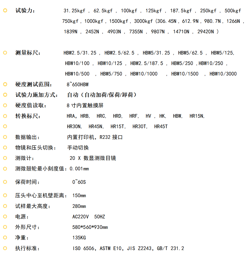 01本儀器具備11級(jí)試驗(yàn)力,15種布氏硬度的測(cè)試標(biāo)尺,14種轉(zhuǎn)換標(biāo)尺,適用于測(cè)試各種金屬材料